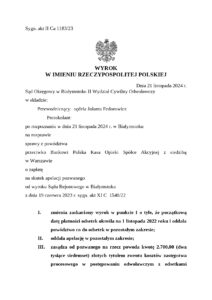 Szczęśliwie dla naszego Klienta skończył się spór sądowy z PKO SA z siedzibą w Warszawie. Sąd Okręgowy w Białymstoku oddalił apelację Banku i obciążył tę instytucję kosztami postępowania. Wyrok został zmieniony li tylko z inicjatywy Sądu i tylko w zakresie daty początkowej odsetek.
