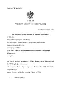 Nasz Klient finalnie wygrał spór sądowy z Towarzystwem Ubezpieczeń, toczący się przed Sądem Okręgowym w Białymstoku. Szkoda majątkowa była likwidowana z dobrowolnego ubezpieczenia mienia firmowego. W wyroku z dnia 31.03.2025 r. Sąd apelacyjny oddalił apelację ubezpieczyciela i obciążył przegrywającego obowiązkiem poniesienia kosztów procesu.